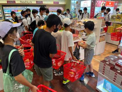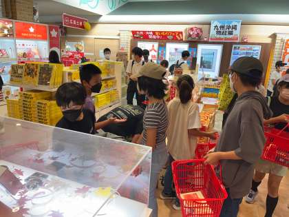 ホテルへ向かう途中,福山SAでお土産の買い物をしました。予定より早く着いたのでゆっくりと時間をとり,それぞれ渡す人のことを考えながら真剣に選んでいました。