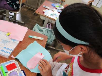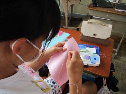 家庭科の小物作りが進んでいます。1学期に学んだ縫い方でフェルトを使って小物作りをしています。かざりをつけたり、使いやすいようにポケットをつけたり…。自分なりに工夫をしています。とてもかわいい小物が出来上がってきています。完成が楽しみです。