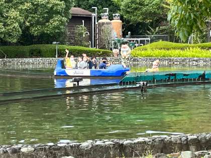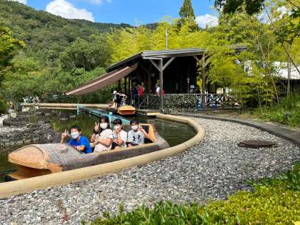 あすたむらんど徳島でグループ活動をしています。人気の吉野川めぐりのアトラクション。上りと下りがあります。水しぶきと共に歓声があがっていました。冒険の国には大きなジャングルジムの砦やすべり台があります。上から「めっちゃ面白いで!」と誘ってくれますが,ちょっと行く勇気はでません。