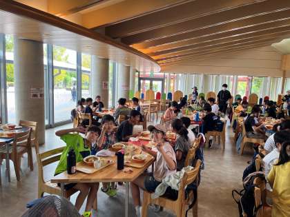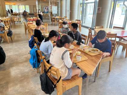 たくさん遊んだ後は昼食です。班ごとに2回に分けて食堂でカレーライスをいただきました。