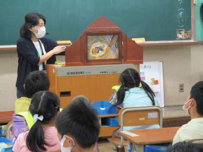 お話に引き込まれて前のめりになりながら聞いている様子が印象的でした。