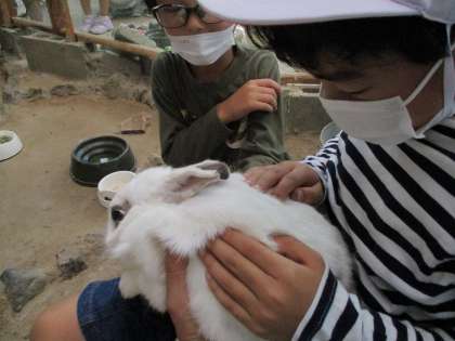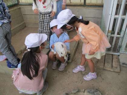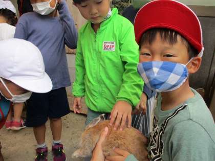 得意げに抱っこする子もいれば、触りたいけどちょっと怖い…!と葛藤する子もいましたが、最後は触りたがっていた全員がうさぎとふれあえました。