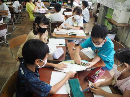 ごんの気持ちの変化を読み取り、考えたことを話し合う活動をしています。場面が進むにつれて変化していくごんの気持ち。意見を交流しているうちに友達の考えに触れ、学びを深めている姿が見られます。