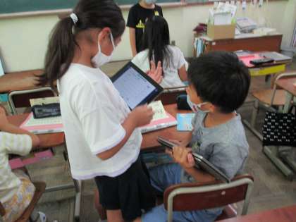 ロイロノートを使って文房具のイラストをやり取り。