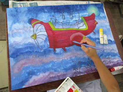 着色の仕方や構図を工夫して,楽しい絵になってきました。