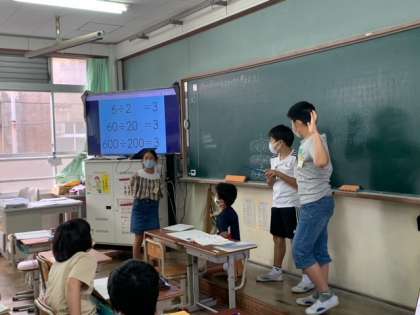 図や言葉を使って自分の考えを話す力がついてきたなと感じます。また、説明することが難しくても友達の意見を参考にしたり助け合いながら学習に取り組んでいます。