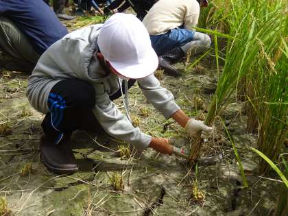今日は天気にも恵まれ、稲刈りを行うことができました。