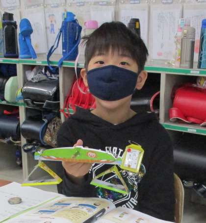 算数の教科書に、重さの教具として天秤がついています。この教具だけで子どもたちは重さに興味津々。いろいろな物を計り比べています。片方には1円玉を何枚か載せて、重さの単位である「グラム(g)」を確認することもあります。高学年になると理科で上皿天秤を使うこともあります。その時に今の学習が役立つので、重さの基礎を学習しています。接頭辞である「K(キロ)」「m(ミリ)」は理解できたでしょうか。これも単位換算の基礎となります。難しいですが、理解して身につけてほしいと思います