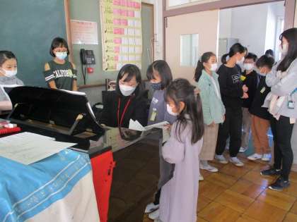 休み時間にも進んで練習に取り組んでいます。