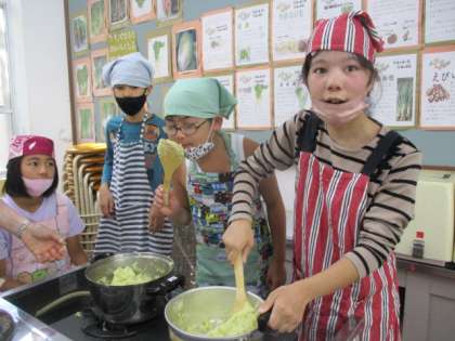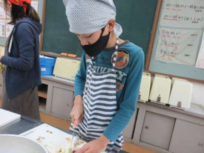 芋と野菜の皮をむく係、材料を切る係に分かれて、それぞれ調理を進めました。包丁を握った時のみんなの真剣な眼差しが印象に残っています。