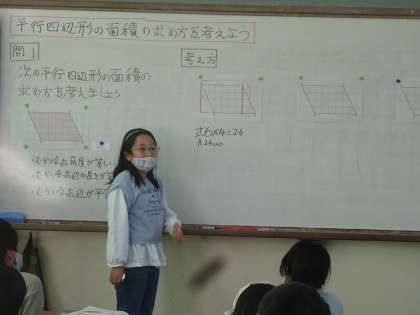 平行四辺形の面積の求め方を考えました。