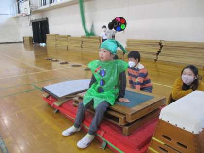 初めに比べると、見違えるように演技が上達したと感じます。今日はセリフもすらすらと言うことができていました。大急ぎで大道具を運んだり、衣装を着て跳び箱を跳んだり。キャストも裏方も大活躍でした。