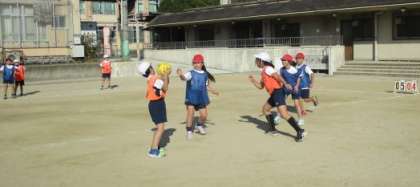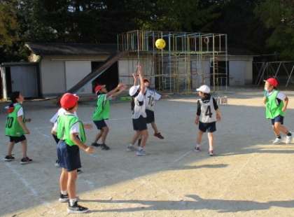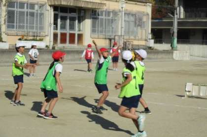 まだ自分のゴールがどちらか咄嗟に判断できなかったり、ボールを持ってどこに投げようか迷いに迷う場面が多々見受けられますが、そこは3年生、ほどなく戦術を考えて、ゴールを量産することでしょう。体育が終わったら、みんな火照った顔をしています。