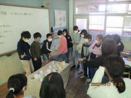 休み時間に遊び係が「射的ゲーム」を実施してくれました。遊びと言われれば外遊びが思いつきますが,室内でもみんなが楽しめることを企画してくれました。割りばし鉄砲で的に当てるのは意外と難しく,当てるのに一苦労しながらも楽しんで射的をしていました。