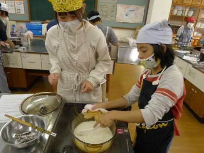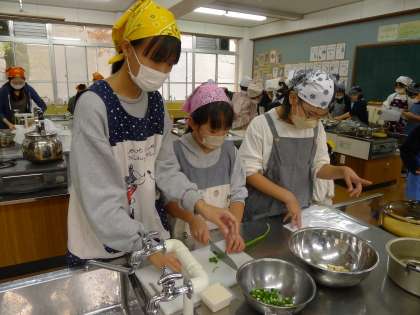 今日は、2組で調理実習を行いました。どのグループも手際が良く、自分ができることを意欲的に探し、時間内に安全に進めることができました。とても上手に明徳米が炊きあがり、ふっくらとつやつやしたお米を美味しそうに試食していました。片付けも協力して進めていました。次回は、3組です。