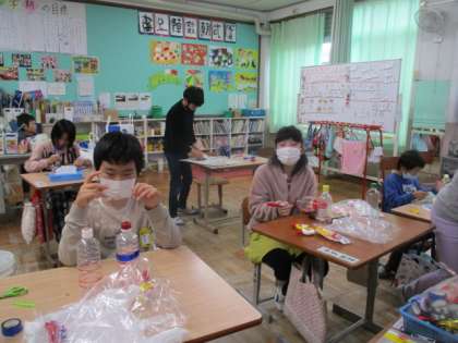 今週の図工は、「なかよしお楽しみ会」に向けたプレゼント作りをしました。