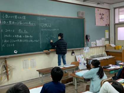 小数と整数のかけ算の計算のしかたについて学習しました。