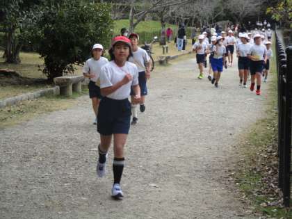 中間休みのランニング練習に積極的に参加し、持久走大会当日もそれぞれ自分なりのペースで、楽しく走ることができました。子ども達の中には、予め目標を立てて、それを達成するために一生懸命走り切った子もいます。寒い中よく頑張りました。