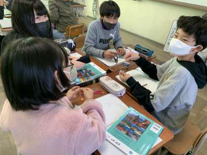 理科でてこのはたらきについて学習しています。今日は道具の支点・力点・作用点にそれぞれの色のシールを貼り、その特徴を調べました。班で意見を伝え合いながら考えを深めることができていました。