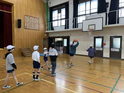 運動委員会の企画で、シュート大会をしています。久しぶりにバスケットボールに触れたという子も多かったですが、かなりの確率でシュートを決めていました。3分間、集中して声を掛け合いながら、一緒に喜び合いながら取り組む姿が素敵でした。