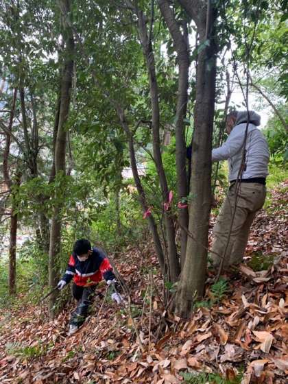 雨が降ってきたため、いつもより短時間での作業でしたが、多くの方にご協力いただいて、草木で埋もれていた場所に人が通ることのできる道が少しできてきました。
