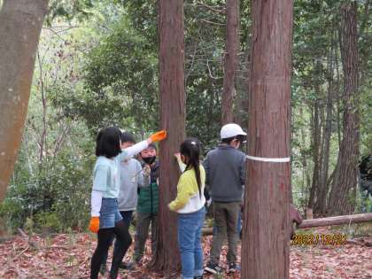 竹をたたく子、葉や実を集める子、倒木の根の下にできた穴に入ろうとする子など、それぞれが楽しんでいました。