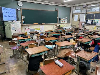 避難の際には、低学年を優先し、静かに行動する姿が見られ、高学年にまた一歩近づいている4年生でした。