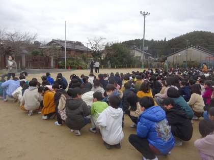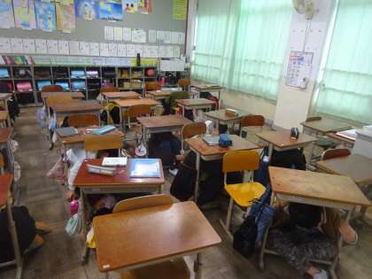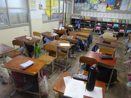 今日は地震があった時の対応について勉強し、避難訓練を行いました。
