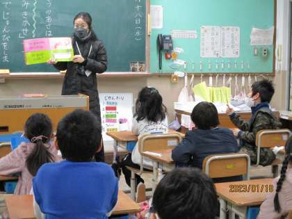 読書タイムにボランティアの方が読み聞かせをしてくださいました。