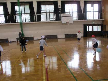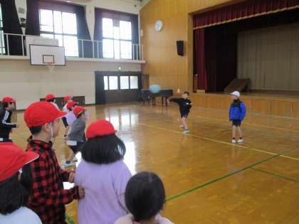 1年生の係活動では、スポーツ係の人たちが中心になって、体育館でドッジボール遊びなどをしました。
