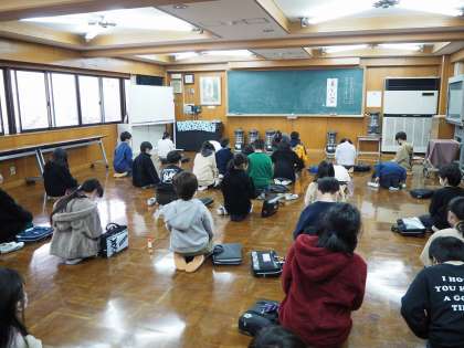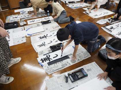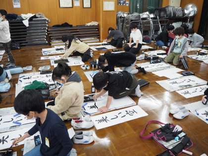 今日は画仙紙という長い半紙に書くため、慣れない正座をしながら活動しました。