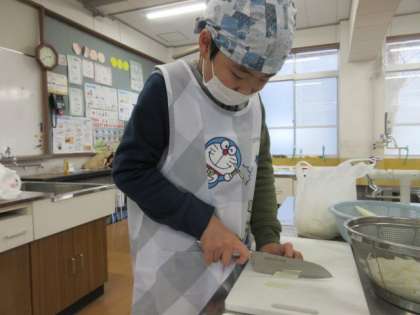 ピーラーで大根の皮を剥いたり、包丁で細切りにしたり、分担して沢山の大根を干せるように準備しました。