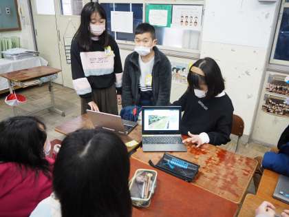 「岩倉川チーム」「日本チーム」「社会チーム」の3チームがそれぞれ学習してきたことを報告し合いました。