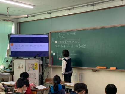 分数の足し算・ひき算は3年生の学習を振り返りながらできました!4年生になって1よりも大きくなる分数でも数直線を使って説明する姿が見られました。