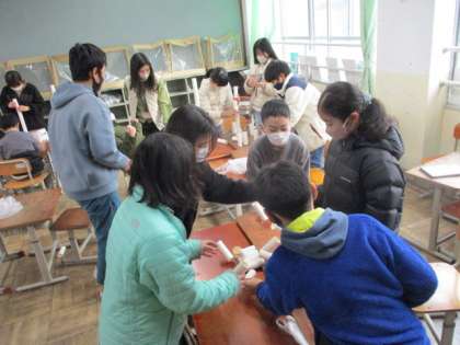 3年生がクラブ活動見学に来てくれました。室内ゲームクラブでは、室内でできる遊びをいろいろ体験していますが、今日はトイレットペーパーのしんつみ対決!個人戦やチーム戦、アイデア対決など、いろいろやってみました。3年生にもやってもらいましたが、楽しんでくれたかな?