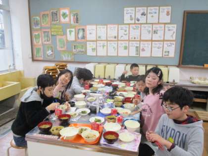 でも頑張って作った甲斐があり、どの料理も大変美味しく出来上がりました。給食と合わせて、なんとも豪勢なお昼ご飯になりました。