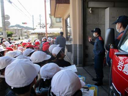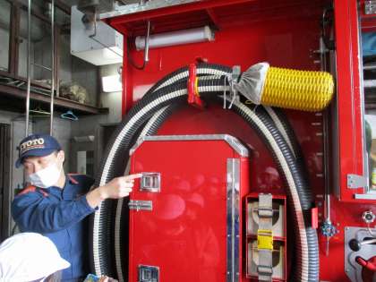 社会科「安全なくらしを守る」のまとめとして、岩倉消防出張所を見学させていただきました。消防車の仕組みや,出張所の中,実際の訓練の様子などを見せてくださいました。こうやって消防士の方たちが自分たちの街を守っているんだということを感じ,これから自分たちでできることを考えてもらえればと思います。