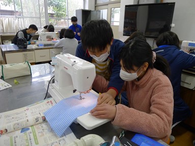 先週、から縫いをしましたが、実際に上糸と下糸を入れて縫う練習をしました。から縫いとは違い苦戦していた様子もありました。
