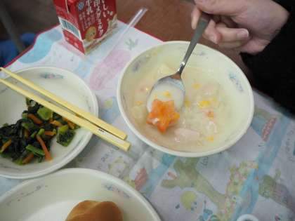 先日、給食のシチューに星形のニンジンが入っていました!子どもたちは、誰のシチューに入っているのかとウキウキしながら食べました。