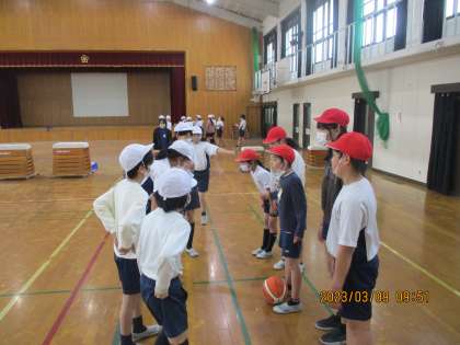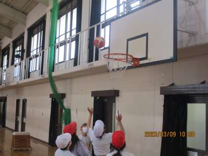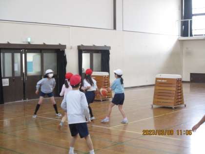 最後の3×3をしました。今回は試合メインで行いました。どの子どもたちも初めよりとても上手になっていました。何より技術だけでなく,声かけやチームワークを大切にしいる姿がとてもよかったです。これまでの経験を活かして6年生での体育も頑張ってほしいです。