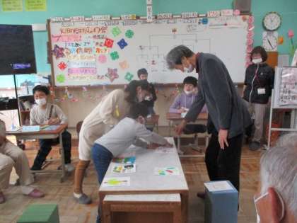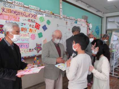 今年度も明徳農園の活動では、畑の先生方に大変お世話になりました。今日は星の子の教室にお招きし、一緒にカルタ大会をしたり、準備していた切り干し大根をプレゼントしたりして感謝の気持ちを伝えました。