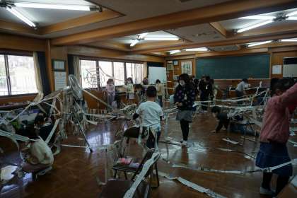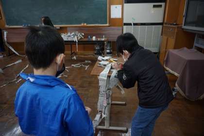 「巨大迷路にしたいから、教室の端から端までつなげよう。」