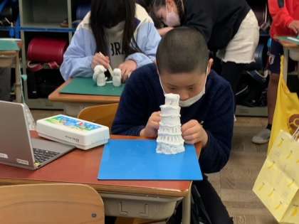 丸めたり、伸ばしたり、積み上げたりと工夫していました!
