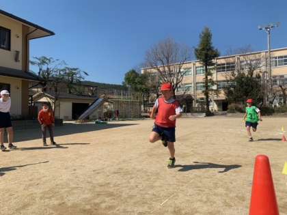 リレーでは、白熱した戦いでした。自分のチームもそうでないチームもみんなで応援して楽しくできました!しっぽ取りでは、とても真剣な顔で友達のすきを狙っている姿が見られました。