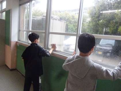 新1年生が気持ちよく入学できるように、体育館を整えたり、掃除をしたりしました。
