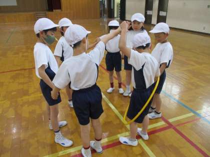 体育では、体ほぐしのうんどうあそびをしています。