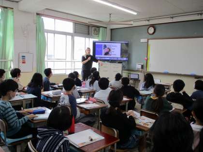 初日からALTのタリー先生が来てくださいました。