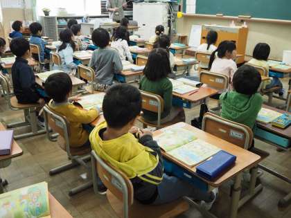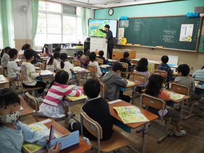 算数の学習では、教科書の絵を見て、同じグループを見つけて数を数える練習をしました。静かに先生の話を聞いたり、手を挙げて発表したりする姿はピカピカの1年生でした!