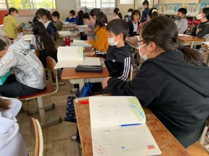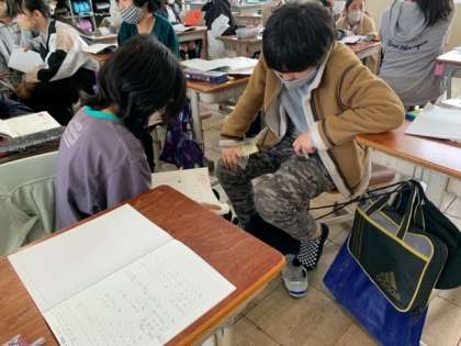 春の河という詩から、春の植物や生き物がたくさんいることを想像していました。聞き手にその情景を伝えるためにはどんな読み方ができるのか。声の大きさや速度に気をつけたり、ジェスチャーをしてみたりと読み方の工夫を考えました。