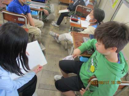 整数と小数では10倍,100倍,1000倍したとき10分の1,100分の1,1000分の1したときの小数点がどのように移動するか考えました。ただ,小数点が動いただけでなく,なんで小数点が動くのかを友達に説明しあう活動を取入れ学びを深めています。